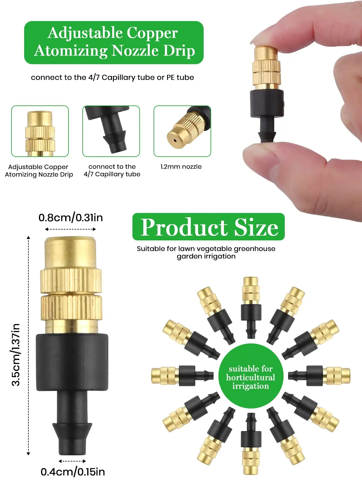 10 قطعة 4/7PVC نظام التبريد التغشية في الهواء الطلق حديقة الري سقي 1/4 ”النحاس البخاخة قابل للتعديل حديقة الرشاشات الصغيرة