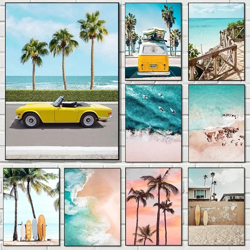 الصيف أشعة الشمس الشاطئ تصفح أشجار النخيل عرض البحر المشارك قماش لوحات صور فنية للجدران ديكور المنزل